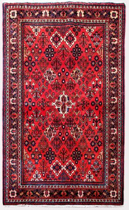 About 80 miles from Isphahan in central Persia, this town has woven rugs intermittently since the 18th century, mostly in lattice and flower patterns. Weaves are medium fine and the style is semi-urban. Antique Persian Joshagan rugs are relatively rare and there never was a significant export production. They are a true Persian carpet, unaffected by external style trends or the vagaries of taste. Reds and blues are the preferred colors.