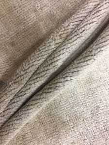 One problem, such as it is, that it is hard, very hard, to make a silvery carpet. No dyeing, no simple wool processing, no bleaching. Ecru is easy, white, and off-white are only a little harder. But silver, cool and crisp is very hard. No traces of grey, no shadows of beige, no intimations of eggshell. Just try finding that wool! Angora goat wool is shiny, but never comes, even in processed form, in anything like what we require. Texture? No nubbiness, no looping, no high/low. Silver allows for no cheating, no improvisation. Any compromise is obvious.