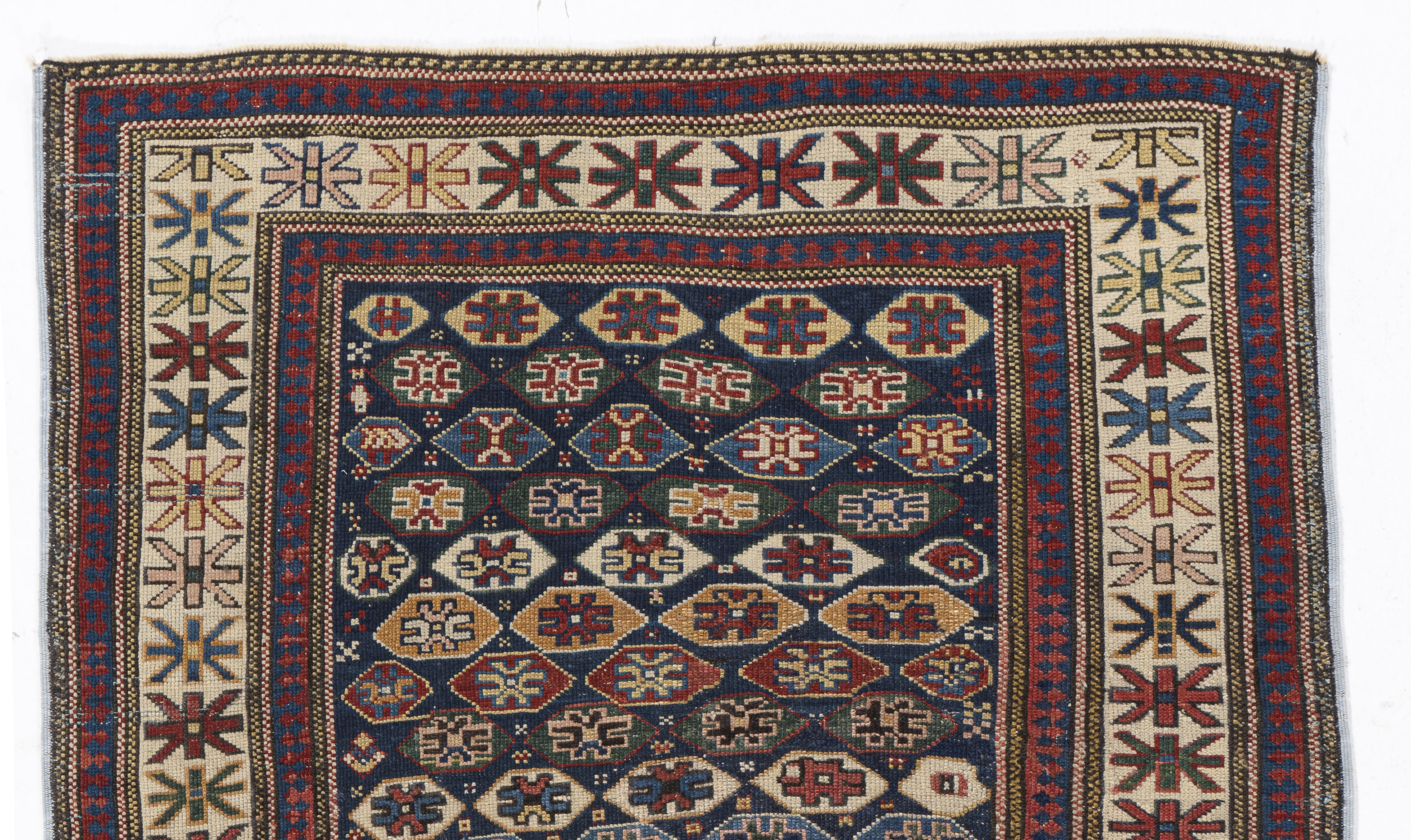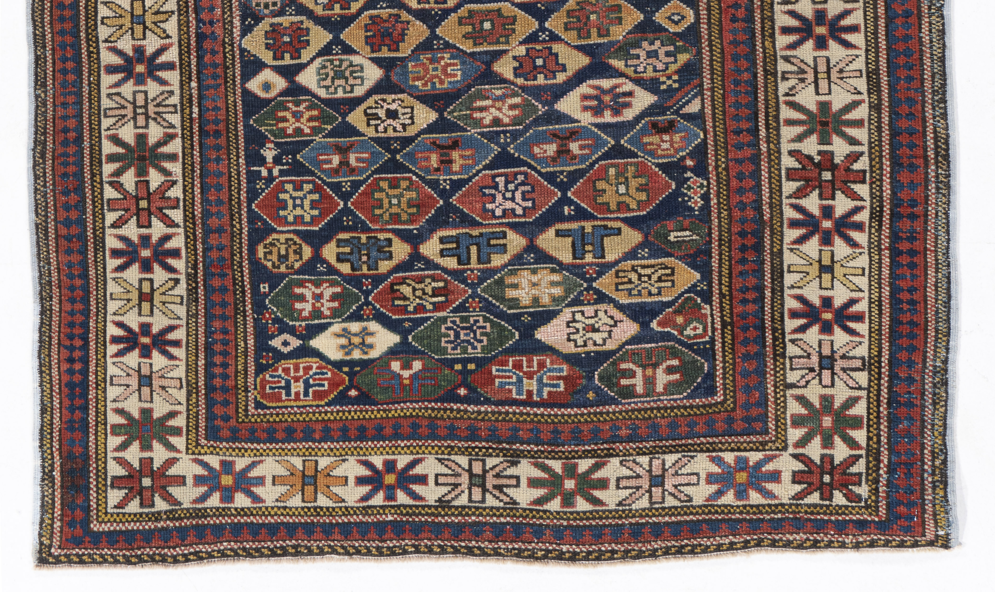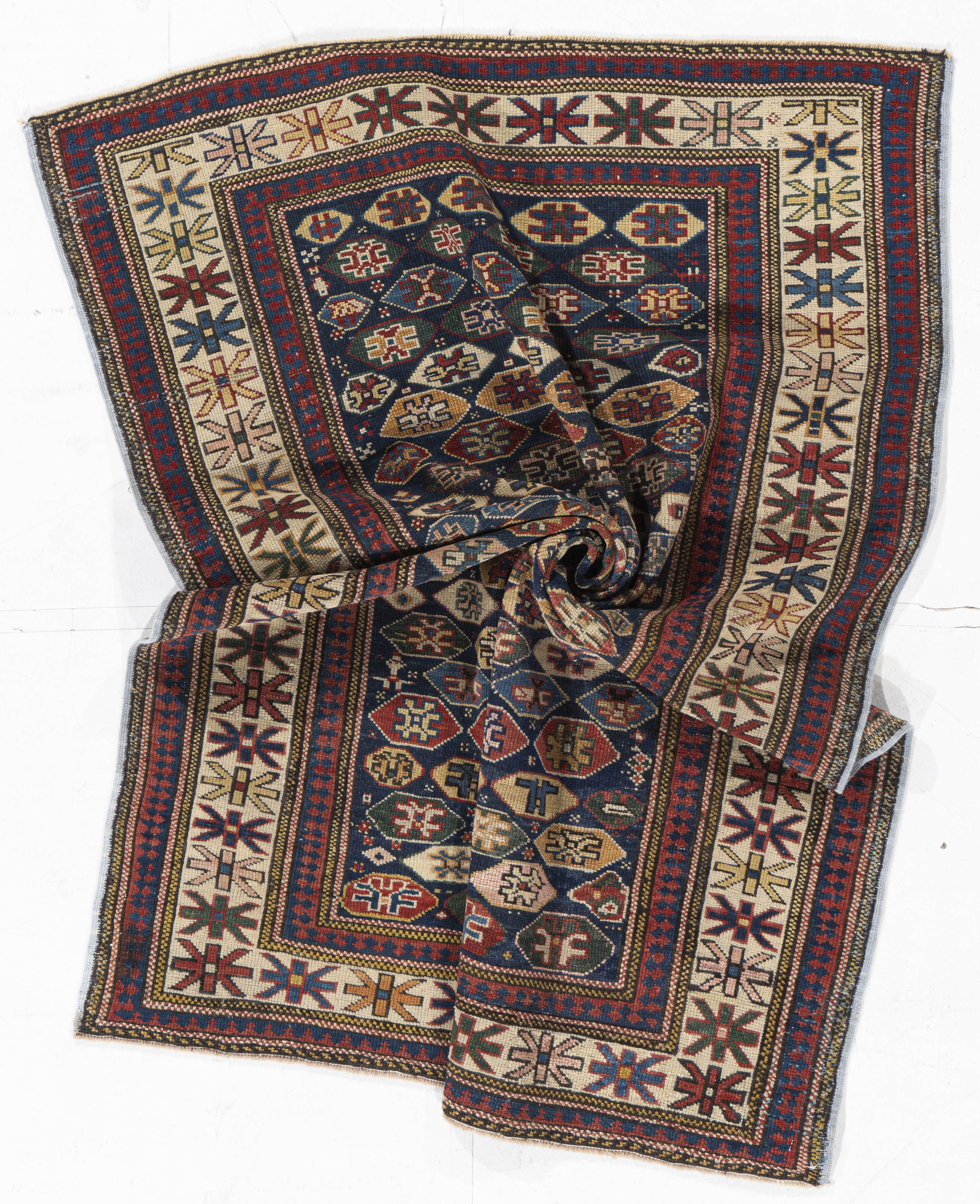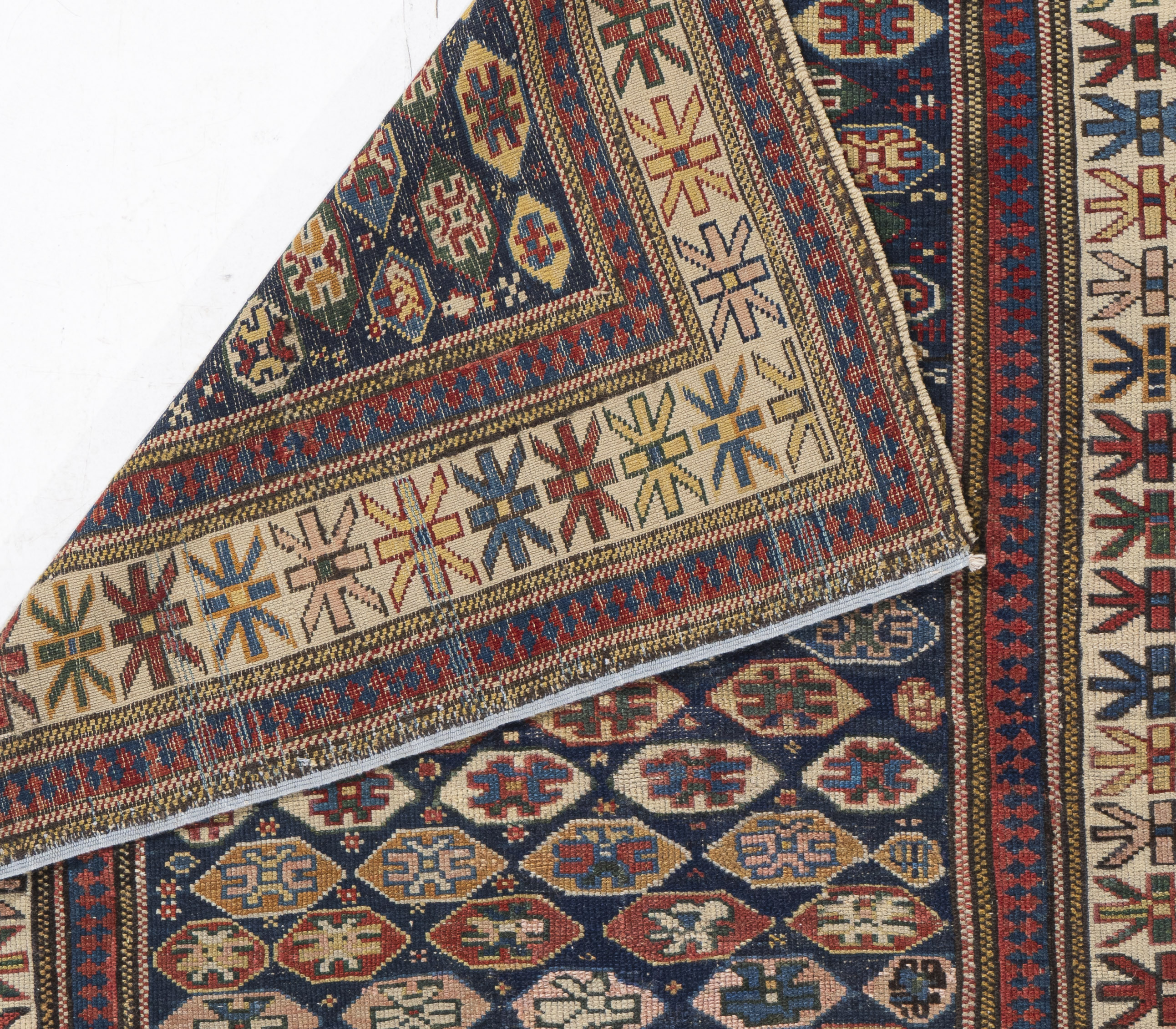 Antique Caucasian Shirvan Rug. These types of antique Caucasian rugs were woven in the eastern part of the region, mostly along the west coast of the Caspian Sea. They display intricate designs, often in prayer (niche) formats; shorter, often velvety piles; complex color palettes; and relatively fine weaves. Their design complexity rivals the best antique Persian tribal rugs.