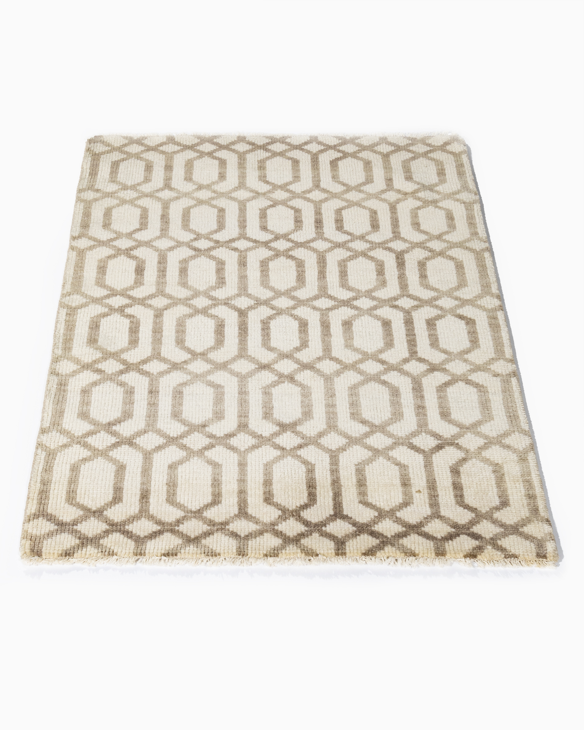 Hexagonal Ivory-Taupe Rug 1'6 x 2'.