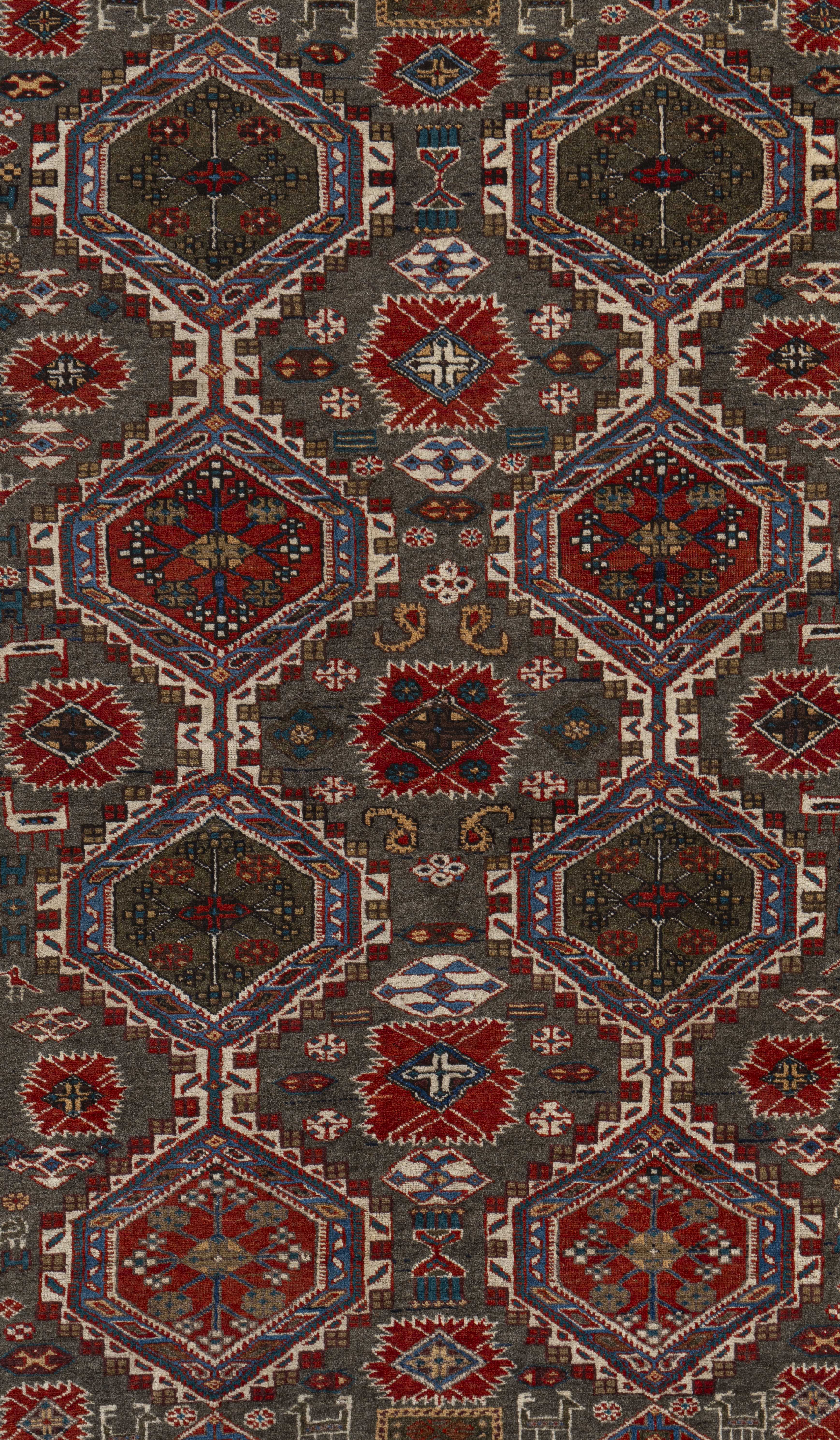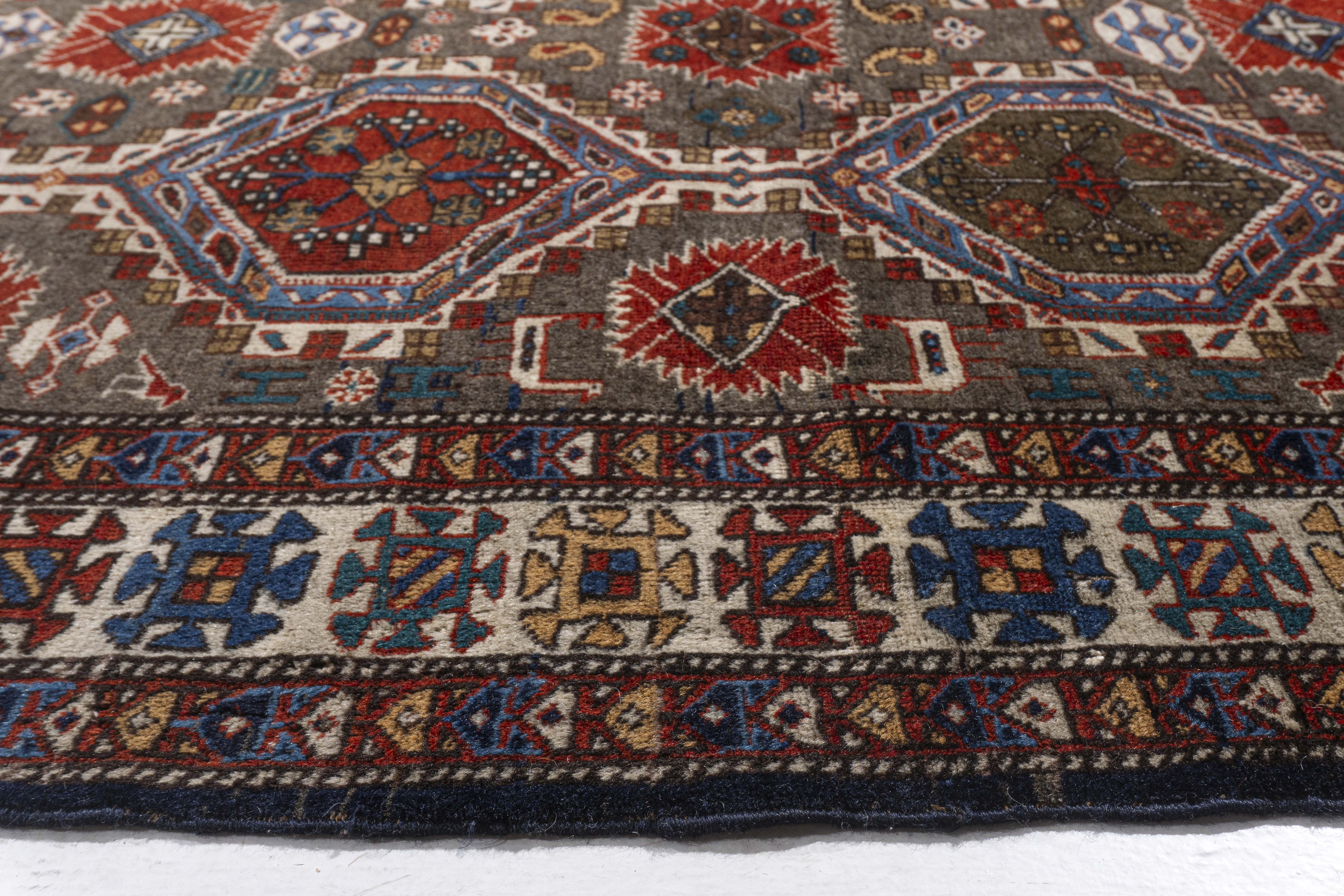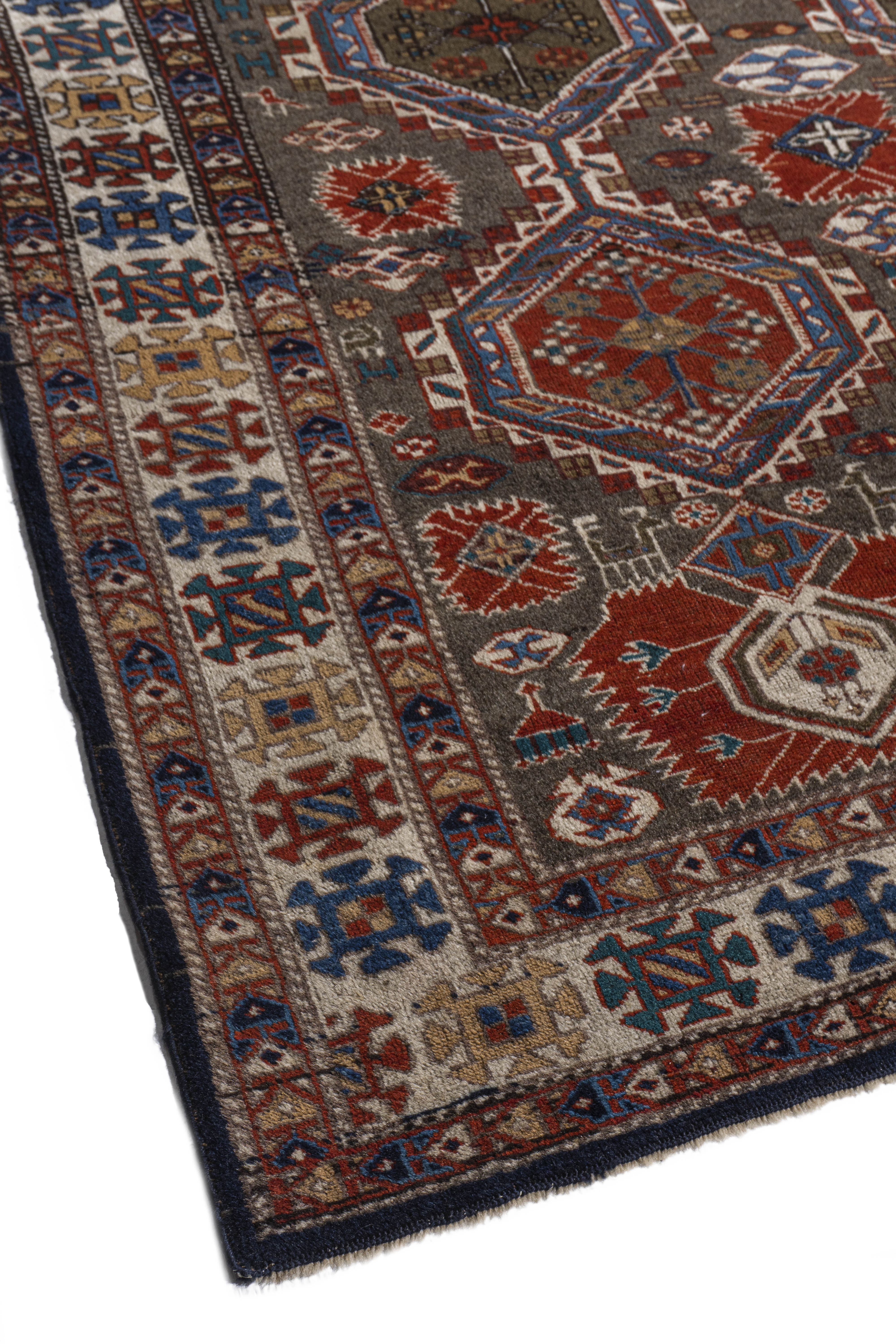 A Turkish recreation of a Caucasian rug with the intricate details perfectly hand knotted to create this beautiful piece. Colors: greens/brick.