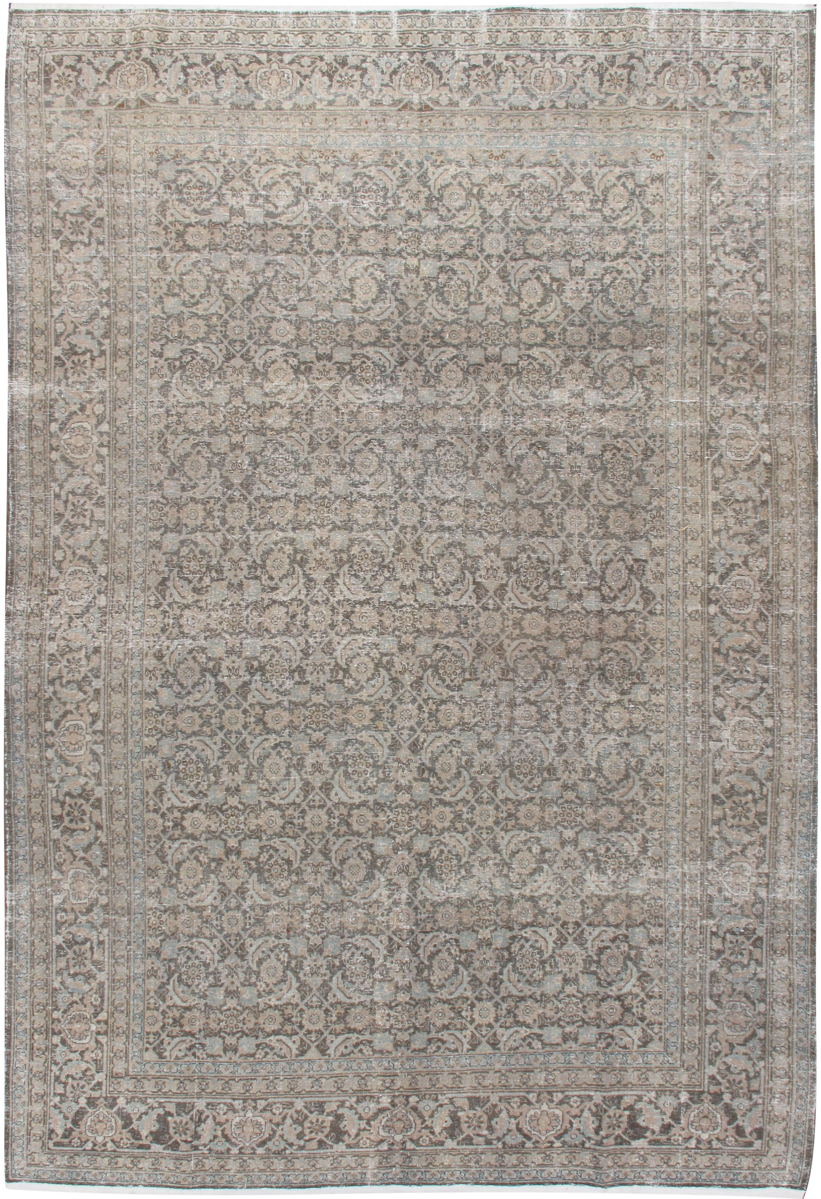 A hand knotted circa 1920 distressed Tabriz Rug. Distressed, Shabby Chic. The rug is solid but with low pile and a distressed look that adds to its beauty and charm. The rug has a solid foundation and will stand up to the rigors of normal daily use.